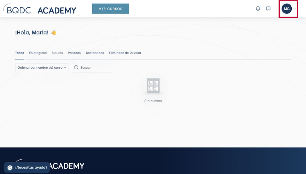 Se já iniciou sessão no site da BQDC Academy, poderá aceder diretamente ao Campus BQDC Academy sem ter de introduzir novamente as suas credenciais. Ambas as plataformas estão sincronizadas e partilham o mesmo início de sessão.